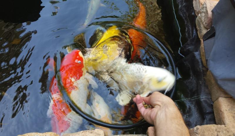 Φέτος ταΐζω 3-5 φορές την μέρα. Μόνο το ένα γεύμα είναι πλούσιο. Τα άλλα είναι ποιο λιτά. Τρώνε περισσότερο από διπλάσια τροφή σε σχέση με πέρσι και αυτό με φρενάρει λίγο από το να τους δίνω και άλλα πλούσια γεύματα. Ιδικά στην πρώτη χούφτα φαγητό που ρίχνω, φοβάμαι μήπως πεταχτεί κανα ψάρι έξω από την λίμνη. Με τόσο πιπίλισμα στα δάχτυλα φοβάμαι μην μου φάνε κανα νύχι.