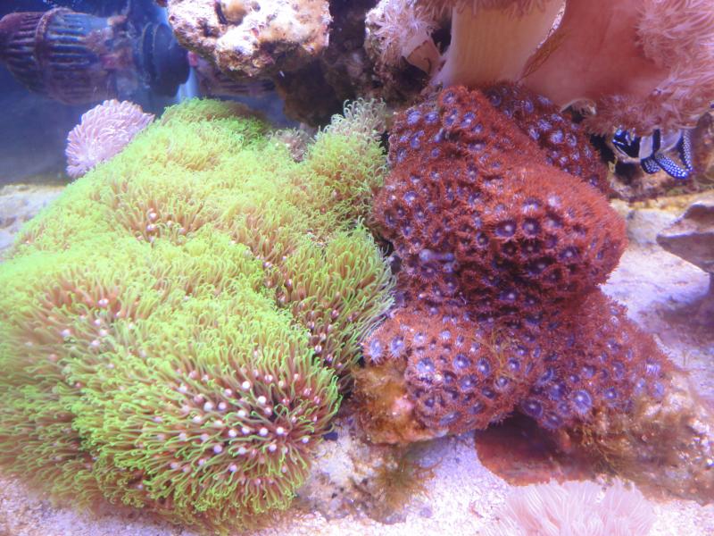 δεν έχω αλλάξει τίποτα, σπάνια τα ταιζω ζωοπλαγκτόν, αλλά δεν τα έβλεπα να τρωνε, τελευταία του έριξα λίγο πολτοποιημένη γαρίδα και είδα ότι την άρπαξαν κατευθείαν. βασικά τα βλέπω σε πολύ καλή κατασταση κατα τα άλλα μονο το χρωμα . μερικές φωτό ακόμα από τα ζωντανά. |