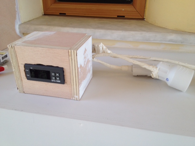 πρώτα εφτιαξα ένα κουτι και έβαλα τον ελεγκτή θερμοκρασίας μέσα,σε συνδεσμολογία με γειωση(ευχαριστω τακη(μοδ) |