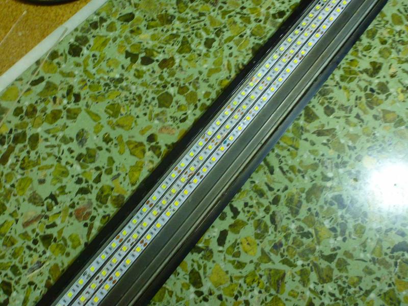 εχω κολλησει 4 λεντοταινιες τωρα και θα βαλω αλλη μια με ψυχρο λευκο. αυτες κολληθηκαν πανω στο αλουμινιο. απο πανω θα μπει πλεξιγκλας και οι ενωσεις θα σφραγιστουν με σιλικονη. μετα θα συνδεσω καλωδια,θα μπει ολο αυτο στο ενυδρειο και τελειωσαμε η νεκροψια θα δειξει |