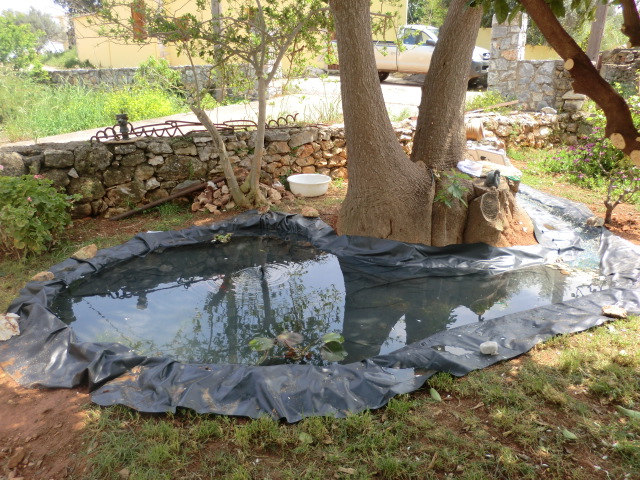 Ειναι 3μ επι 4μ, με βάθος από 20εκ έως 50εκ(εδώ μετανιωνω που δεν την έκανα βαθύτερη,αλλα δεν αντεξα ρε παιδια άλλο σκάψημο)και ύστερα από ενα μήνα λειτουργίας όλα πανε ρολόϊ