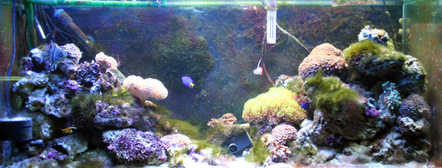 το ξερω το ξερω...... απλα με τις γεννες των δισκων εχει μπει σε δευτερη μοιρα.......Τον βραχο τον πηρα απο τον georgegrat και ηταν ετοιμος κουραρισμενος...... Η κοραλλινη λειπει γιατι ο αχινος μου πειναει συνεχεια...... Τωρα εχω σαν στοχο να απαλλαγω απο την αλγη....... Αγορασα το τριτο διαφορετικο αντιφωσφωρο και φερνω και denitrator...... Τα ψαρια πανε καλα αν και το παραφορτωσα ο αρχαριος και γενικα εχει ισορροπησει...... Α ξεχασα το ποιο βασικο..... Αλλαζω το φωτιστικο..... Ειμαι ηδη με μια λαμπα 39βαττ μειον αλλα περιμενω τη ΜΗ ....... Giesemann 150W coral.....Εχω αναμονες και δυο ακομα Τ5 οποτε θα στρωσω το χρωμα με αυτες.......