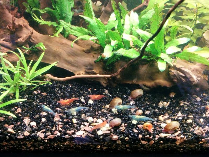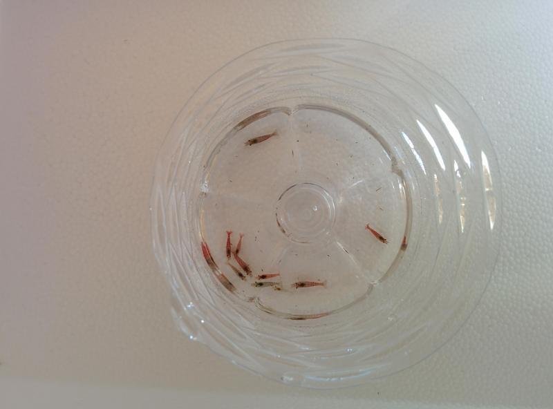 Χάζευα χθες το ενυδρείο την ώρα που έτρωγαν και να σου δύο γαριδάκια 5mm περίπου... Κοιτάζω λίγο καλύτερα και βλέπω κάτι μικροσκοπικά "σκουπιδάκια" να κολυμπάνε σαν τρελά. Μάλλον γέννησαν οι red cherry. Περιμένω και τις μπλε τώρα αφού έδώ και λίγο καιρό μία είναι με αυγά.