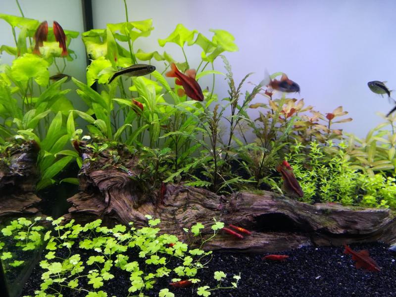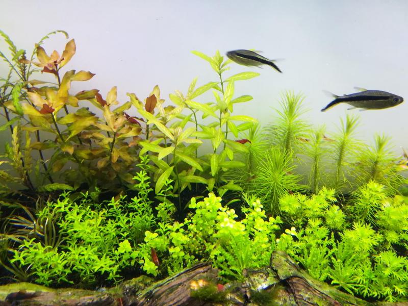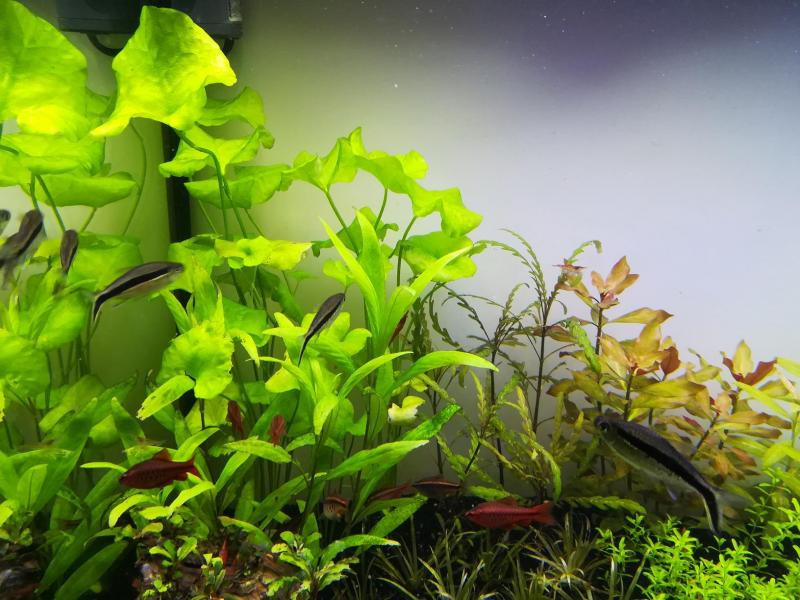 Τα φυτα σου παρουσιαζουν ελλειψη σε καλιο.Τα πογκοστεμον και η χοτονια δειχνουν υγειες.Η φουρκατα και καποια αλλα οχι.Βαλε λιγο K2SO4 θεικο καλιο και βλεπεις. Καλοριζικο το φωτιστικο!;) |