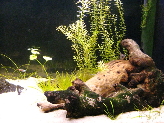 Μετα απο αρκετο καιρο, παρελαβα επιτελους μερικα φυτα για να γεμισω το ενυδρειο μου και να νοιωσουν λιγο πιο ανετα τα ψαρακια. Μετα την αλλαγη της αμμου τα ψαρια ηταν πολυ στρεσαρισμενα και σπανια κυκλοφορουσαν καθως προτιμουσαν να μενουν κρυμενα κυριως κατω απο την ανουμπια. Την τελευταια εβδομαδα ομως η συμπεριφορα τους εχει βελτιωθει κατα πολυ και μπορω να πω οτι νοιωθουν αρκετα ανετα.
