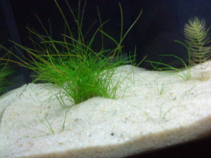 Eleocharis acicularis γίνεται πολύ ψηλότερο,αυτο της φωτογραφίας που θέλεις να κάνεις είναι το eleocharis parvula. Και συνήθως ένα γλαστράκι το χωρίζουμε σε 6-8 μερίδες τις οποίες τις φυτέυουμε σε απόσταση 3-4εκ. μεταξύ τους. |