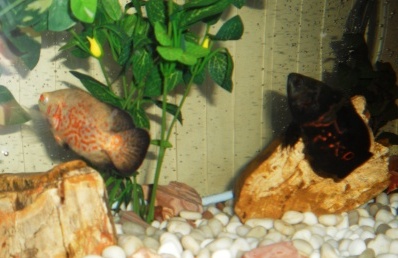 Το ένα Oscar που έχω είναι Albino και 45 ημέρες πριν ήταν λευκό με ροζ και πορτοκαλί λωρίδες πάνω του. Τις τελευταίες 20 ημέρες τα πτερύγια του (ουρά - ράχη) έχουν γίνει μολυβί-σκούρο γκρι.... και σταδιακά βλέπω και το σώμα του να σκουραίνει (πολύ πιο αργά σε ροή από ότι τα πτερύγια αποκτά αν παρατηρήσεις καλά, ένα αχνό-αχνό γκρι). Είναι το πιο ενεργητικό ψάρι όλου του ενυδρείου.....το 'σαρώνει' από άκρη σε άκρη όλη την ώρα καθώς κολυμπάει συνέχεια 'αγκαλιά' με το δεύτερο Oscar Tiger. Την ώρα του ταίσματος 'ορμάει' πρώτο και φεύγει τελευταίο. Παράλληλα σε 45 ημέρες πρέπει να έχει πάρει σε μήκος 0,7-0,8 cm......και δείχνει κάτι παραπάνω από υγιές. Συνημμένο Αρχείο 53701 Googl-αρα την ερώτηση ....έκανα αναζήτηση εδώ ......αλλά βρήκα δύο τρεις διαφορετικούς λόγους που μπορεί να συμβαίνει. Θα ήταν πολύτιμο για εμένα αν είχε κάποιος μία απάντηση ...από την εμπειρία του. Η Photo νομίζω βοηθάει. Το ενυδρείο ξέρω ότι είναι πολύ μικρό .....ψάχνω ασταμάτητα για αγορά ενός μεταξύ 450-600 λίτρων. Γυρνάω κάθε μέρα την Αθήνα για να βλέπω επιλογές.....;). |