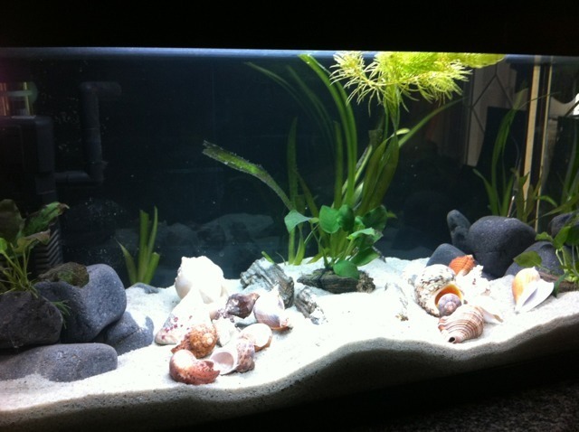 Δυο μικρες παρατηρησεις: - τη φωτοπεριοδο γνωμη μου ειναι να τη μειωσεις λιγο, αν δε θελεις αλγες. -μετρησε τις σκληροτητες με την πρωτη ευκαιρια, μπορει να χρειαστει να τις ανεβασεις με καμια ασβεστολιθικη πετρα. Τα υπολοιπα για τα κελυφη τα ειπαμε. Με την πρωτη ευκαιρια, βαλε μερικα ακομα. |