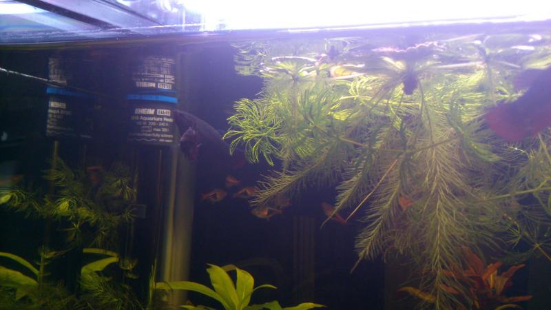 νομίζω το δεύτερο φίλτρο το άφησες λίγο (μία εβδομάδα) για να προλάβει το βασικό του ενυδρείου σου να αναπτύξει ικανή βιολογία. θα σου έλεγα να το αφήσεις κανένα μήνα ή να χρησιμοποιήσεις κομμάτι των υλικών του στο νέο σου. το ύψος μπορείς να το χειριστείς αν κατεβάσεις την στάθμη του νερού και βάλεις φυτά επιφανείας όπως ο πόθος να βγαίνουν πάνω από το νερό. επίσης, δεν βλέπω καλά, αλλά νομίζω ότι ο θερμαντήρας σου ακουμπάει στο χαλίκι. καλό είναι να αφήσεις ένα περιθώριο για να μην σου σπάσει. |