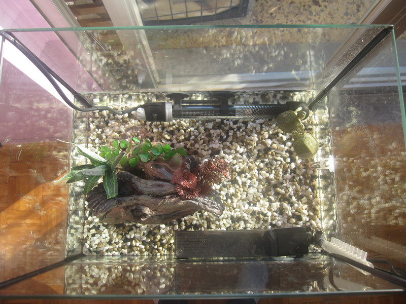 Για την καθαριότητα του χαλικιού δεν χρειάζεται να το βγάζεις και να το πλένεις παρά μια φορά το εξάμηνο περίπου. Υπάρχουν κάποιες λεγόμενες σκούπες βυθού που μπορείς να ταμπονάρεις τον βυθό ή αν αλλάζεις το νερό με λάστιχο, τραβάει και τις ακαθαρσίες. Κανονικά χρειάζεσαι μεγαλύτερο φίλτρο βέβαια γιατί λερώνουν πολύ οι χελώνες. Αν μπορέσεις σε κανένα εξάμηνο να πάρεις το ανάλογο μικρότερο εξωτερικό φίλτρο θα στο καθαρίζει τέλεια. |