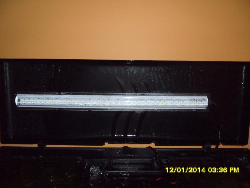 η λάμπα είναι led, ποιο οικονομική από τις λάμπες φθορισμού, γι αυτό και είναι μικρότερης ισχύος. Οι λαμπτήρες φθορισμού (αλλά και οι μπάρες led που τις αντικαθιστούν, όπως η δικιά σου) έχουν ισχύ ανάλογη με το μήκος τους. Δηλαδή, ενώ μπορείς να αλλάξεις μια φυσιολογική (βιδωτή) λάμπα με άλλης ισχύος (μεγαλύτερη ή μικρότερη), δεν μπορείς να αντικαταστήσεις μια φθορισμού με μια άλλη μεγαλύτερης ισχύος, γιατί θα έχει μεγαλύτερο μήκος και δεν θα μπαίνει. Αν ο φωτισμός σου δεν επαρκεί για τις ανάγκες σου (και είναι λίγος πράγματι για τα λίτρα σου) θα πρέπει να προσθέσεις φωτισμό με πατέντα. Αν ξέρεις και πιάνουν τα χέρια σου μπορείς να προσθέσεις άλλη μια τέτοια λάμπα σαν αυτήν που έχεις (κρίνοντας από τις φωτογραφίες, φαίνεται να χωράει). Διαφορετικά, είναι καλύτερα να απευθυνθείς σε κάποιον που γνωρίζει από αυτά. |
