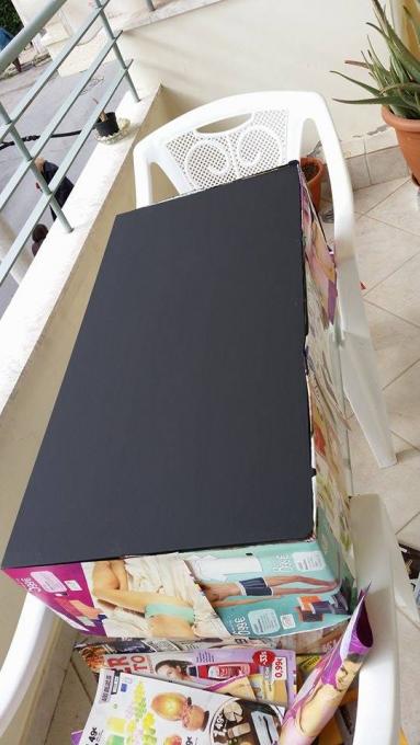 Εγω την έχω βαψει με πλαστικό χρώμα και βγαίνει πολυ ευκολα.. και απλο χαρτονι βιβλιοπωλείου μια χαρά κανει θεωρω... ταινια διπλής οψης στις ακρες και θα ειναι κομπλε