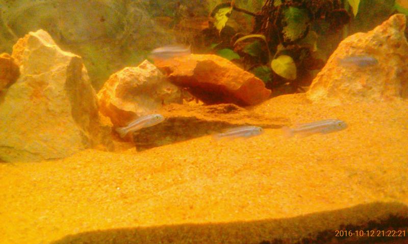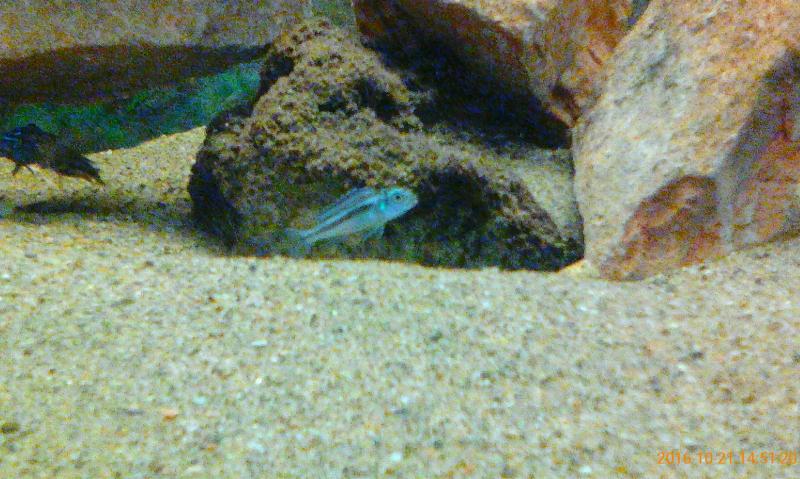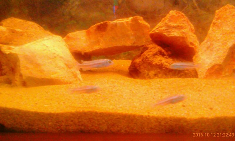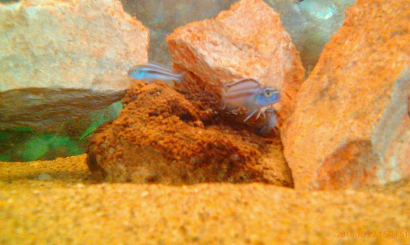 Μετά από ένα μήνα περίπου , προστέθηκαν στο ενυδρείο και τέσσερα Labidochromis Caeruleus. Ξαφνικά , έχω την εντύπωση , το ενυδρείο απέκτησε μία άλλη ,πιο εντονη ζωντάνια και κινητικότητα. Δεν εννοώ λόγω κυνηγητού των νεοεισηρχομένων.