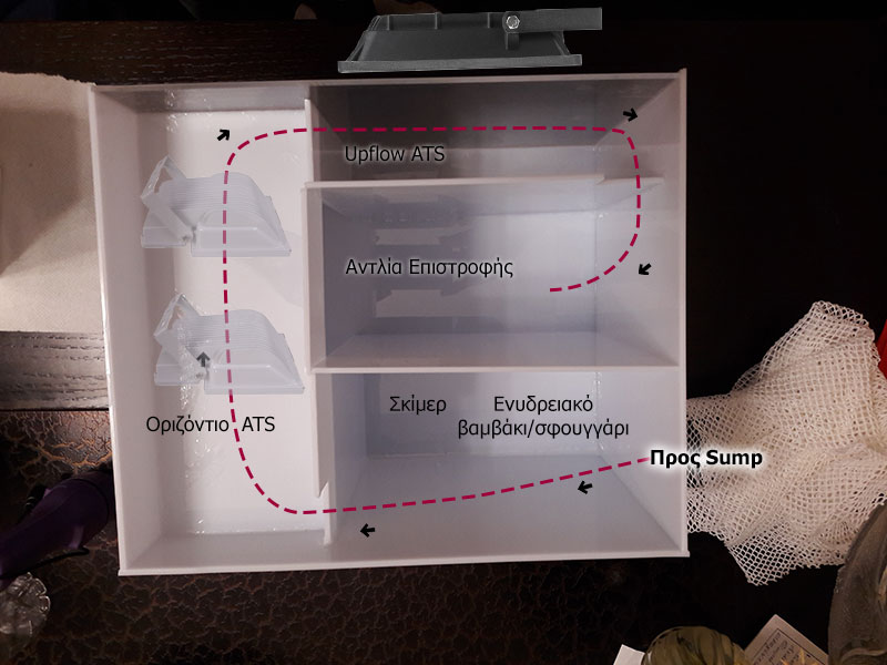 Το τριπτερύγιο δυστυχώς έγινε μεζές σε έναν ωραίο γοβιό που έχω προσθέσει... Τον πέτυχα με κόκκινη ουρίτσα να προεξέχει από το στόμα του!! Δύο μέρες μετά την τότε ανάρτησή μου πάντως, ξαναβρήκε το κόκκινο χρώμα του... Το γωβιοειδές το πέτυχες!!! Έχει πολύ ιδιαίτερη συμπεριφορά!! Οι κόκκινες και πράσινες μακροάλγες δυστυχώς με τον καιρό αποχρωματίζονται... δεν ξέρω γιατί, καθώς το φως είναι φως ηλίου και αρκετά έντονο, περίπου 1w/lt... Ίσως θέλουν περισσότερη ροή... θα το ψάξω γιατί είναι πανέμορφες!! Μπορώ κάθε 2 μήνες που αρχίζουν αν λιώνουν να αλλάζω/προσθέτω νέες, αλλά το θέμα είναι να αναπτύσσονται στο ενυδρείο!! Η Sargassum Muticum μεγαλώνει γρήγορα αλλά διαπίστωσα οτι χρωματίζει κίτρινο το νερό στο ενυδρείο όταν είναι σε αρκετή ποσότητα!! Ο ενεργός άνρακας δεν κάνει δουλειά!! Το όζον όντως αποχρωματίζει αποτελεσματικά αλλά μετρώντας το ORP με ένα pen stick που μου έδωσαν κάθε λίγο δεν γίνεται δουλειά!! Έχω παραγγείλει controller!! Η ποσειδωνία μας τα πάει σούπερμε τον φωτισμό αυτό!! Την έχω κλαδέψει 2 φορές!! Το sump το έχω ξεκινήσει αν και αργοπορημένα, σε μια τετράγωνη έκδοση που θα πατάει πάνω σε ένα βαρέλι 30 λιτρων της αναπλήρωσης!! Δεν παλεύονται οι συνεχείς αλλαγές νερού!! :smt052 Φαίνεται στις παρακάτω φωτος... Από το ενυδρείο θα μπαίνει το νερό σε σφουγγάρι και ενυδρειακό βαμβάκι σε ένα αποσπώμενο κουτάκι, θα περναει από το σκίμερ, θα συνεχίζει σε ένα οριζόντιο ATS, μετά σε ένα upflow ATS και μετά στον χώρο της επιστροφής όπου θα υπάρχει και ένα μικρό φιλτράκι με ενεργό άνθρακα... Έχω παραγγείλει grow leds με fans έτοιμα για τα 2 ATS.. Σε καμιά βδομάδα πιστευω να έχω ολοκληρώσει και να παρουσιάσω!! Συνημμένο Αρχείο 86329Συνημμένο Αρχείο 86330Συνημμένο Αρχείο 86331 Τα ανήψια μου ζητάνε μάσκες να πιάσουν τα δικά τους ψαράκια!! έχουν τη μούρλια του θείου :-) :-) :-) |