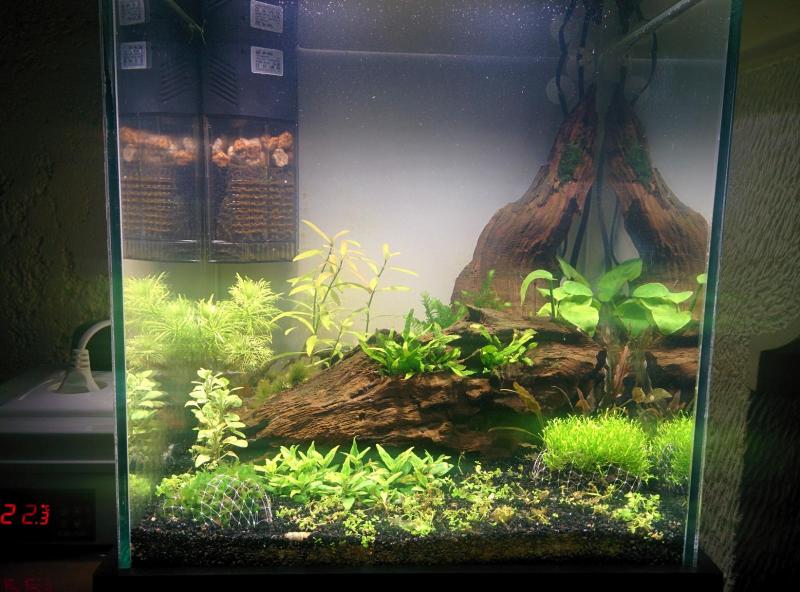 Κάποιες μικρές και μεγαλύτερες αλλαγές... Βγήκε η riccia fluitans και το monosolenium tenerum που είχα δέσει σε πέτρες και στη θέση τους μπήκε eleocharis parvula και cryptocoryne parva. Έφυγε επίσης η fontinalis antipyretica από ψηλά γιατί μεγάλωνε ανεξέλεγκτα και στη θέση της μπήκε fissidens moss. Μπήκαν και διάφορα είδη bucephalandra (αγαπημένο φυτό).