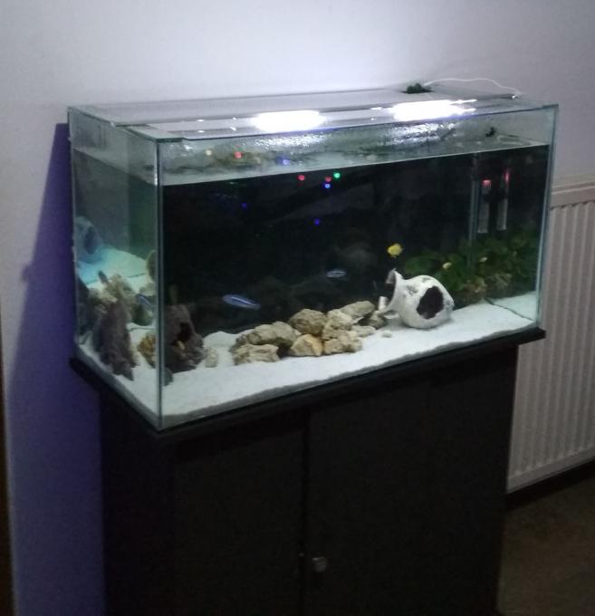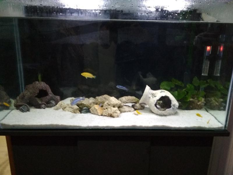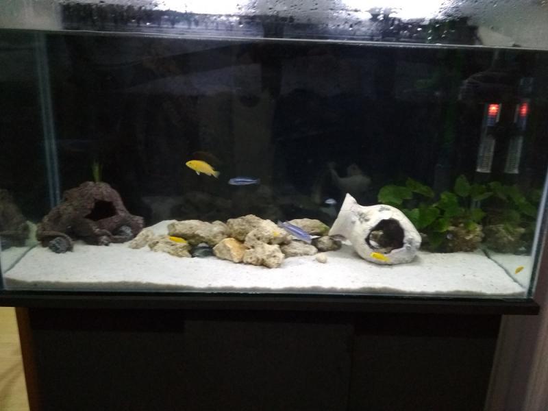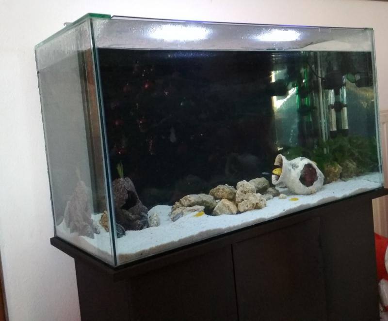 Μπορεις να συμπληρώσεις με μικρες πετρουλες μπροστα σαν "τελειωμα" Επισης με λιγες ακομα μεσαιες να δημιουργησεις κ αλλες κρυψωνες. Θερμοστατη θες 200αρη. Για φυτα δε το σκεφτεσαι? Μπορουν να σου προτεινουν οι Αφρικανοι εδω καποια. |