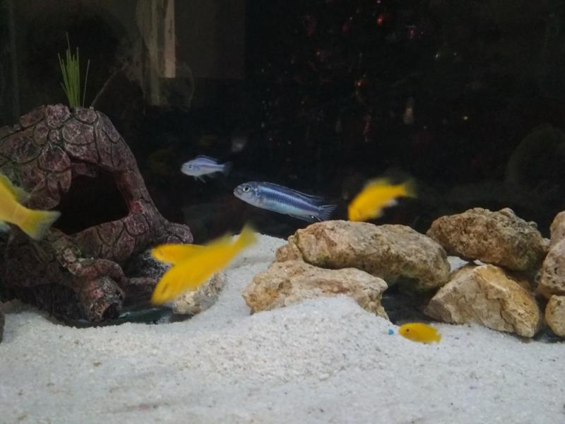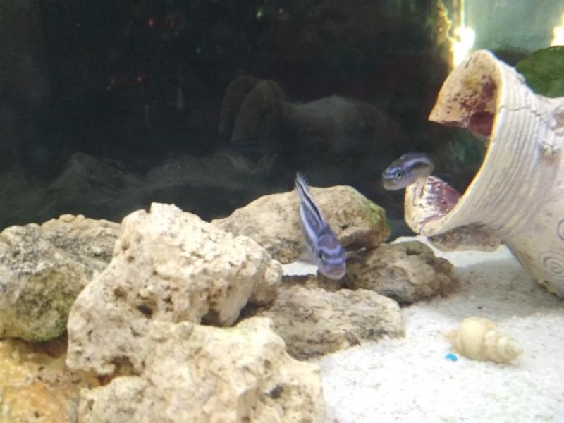 Εχουν δηλαδη την μαυρη γραμμη στο πτερυγιο της πλατης (γιατι αραγε τα εκρυβαν τοσο καιρο?) Αλλα τα 2 μεγαλα mainango για αρσενικά μου φαινονται ,εχουν δηλαδη και τα 2 μαυρο στην κοιλια και εχουν αρχισει οι καυγαδες Το μεγαλο labido φαινεται θυλυκια αφου δεν εχει μαυρα κατω πτερυγια (εκτος κι αν ειναι μικρη ακομα , την εχω 1 χρονο τωρα δεν ξερω) Το καλο ειναι οτι μολις με βλεπουν να πλησιαζω τρεχουν και ερχονται νομιζοντας οτι θα τα ταισω :) Αλλαγες: 1. Εγινε αλλαγη του background απο αφισα σε βυνιλιο (μαυρο παντα!) Απλα τελειο χρωμα χωρις αντανακλασεις κτλ 2. Ετοιμαζομαι δυνατα για αλλαγη κ αυξηση βραχων . Πηρα πλαστικες σχαρες για να βαλω τους νεους (και μεγαλυτερους βραχους) χωρις προβλημα Αυριο βγαινω για πετρομαζωμα Φωτος θα βαλω μολις τελειωσω! |