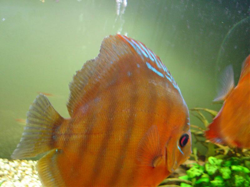 Έχω ένα ενυδρείο 200 λίτρων (εδώ και 6 μήνες) με εσωτερικό βιολογικό φίλτρο, φυτεμένο με λίγα φυτά (προς το παρόν) με 4 δίσκους και 8 ροδόστομα. Πριν 3 εβδομάδες ο μεγαλύτερος δίσκος παρουσίασε ένα εξάνθημα στο άνω και κάτω πτερύγιο και στην ουρά, το οποίο εξελίχθηκε και κατέστρεψε μέρος των πτερυγίων (επισυνάπτω φωτογραφίες). Σε κατάστημα μου είπαν ότι είναι Ick και μου έδωσαν δύο φάρμακα (Contra Ick της Tetra & Myxazin της waterlife), που έβαλα σύμφωνα με τις οδηγίες. Αρχικά υπήρξε επιδείνωση (για 2-3 ημέρες), στη συνέχεια όμως βελτιώθηκε μέχρι θεραπείας.10 ημέρες μετά και αφού είχαν αρχίσει να αναπλάθονται τα πτερύγιά του, επανεμφανίστηκε στο άνω πτερύγιο. Αυτή τη φορά έβαλα αμέσως myxazin και bacterlife (της waterlife) αφού αντικατέστησα το 25% του νερού και η αθένεια δεν προχώρησε. Επίσης πρόσθεσα αλάτι.