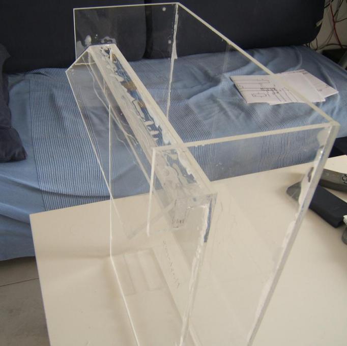 Ειναι απο διαφανες plexi 5αρι για να μπορει να φωτιζεται απο οποια μερια θελουμε.