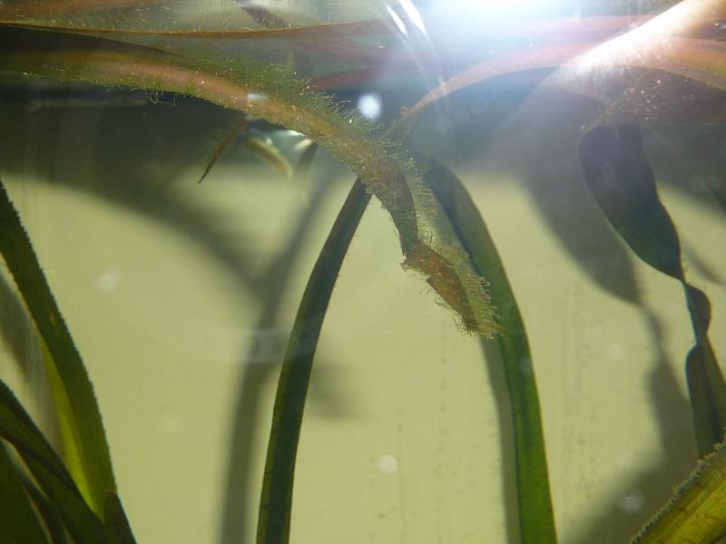 Στις βαλισνέριες, στα άκρα των φύλλων κοντά στην επιφάνεια, υπάρχει κάτι σαν τριχοειδής άλγη (φωτο 3).