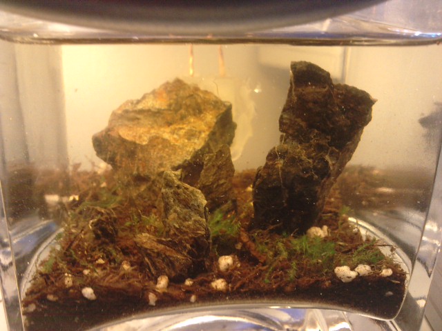 Αρχικα αγοραστικε ως κηροπηγιο, αφου ελιωσε το κερι εμεινε ενα απλο βαζο... Πριν μια εβδομαδα περιπου στο μοναστηρακι ηταν ενας μικροπωλητης με ενα παγκο, ολα ενα ευρο.. Εκει βρηκα ενα φακο λεντ με 12 διοδους, πολυ βολικο σχημα και αμεσως τα συνδιασα, μολις εφτασα σπιτι, εσπασα μια πετρα λαβας πηρα το πιστολι καυτης σιλικονης και κολλησα αρχικα τις πετρες, εριξα το υποστρωμα, ακουμπησα τη μος γεμισα νερακι και ετοιμο!! Τα σχολια δικα σας!!!