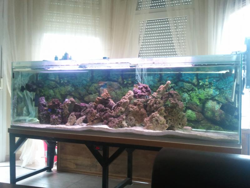 Το ενυδρειο ειναι 2 μετρα μηκος 55 εκ πλατος και 60 εκ Υ μεσα εχω 55 κιλα ζβ μαζι με νεκρο (τωρα δεν ξερω ακριβως αναλογιες να σας πω) και αραγωνιτη..φιλτρο fluval fx5 με ανθρακα και αντιφως κυκλοφοριτες κινεζικους 2 επι 5000 λιτρα την ωρα και 1 με 3000 λιτρα την ωρα...σκιμερ περιμενω απο το ebay απο μερα σε μερα θα ερθει...και εχω βαλει τωρα ενα μικρο της prism red sea να δουλευει...εχω μεσα 2 ψαρακια damsel και 1 γαριδα..αυτα..