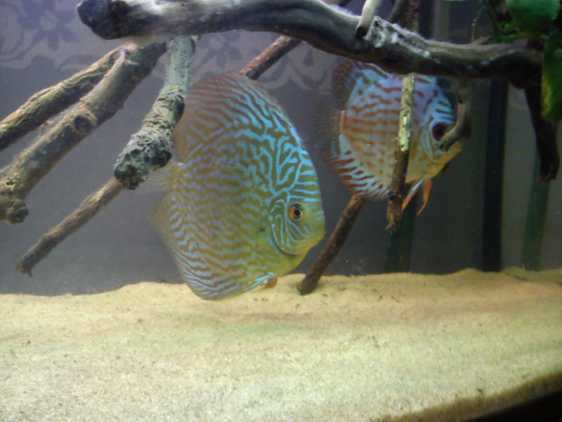 καλησπερα μετα απο αρκετο καιρο... τελικως το ενυδρειο φιλοξενει απο τοτε ενα ζευγαρι μονο δισκους!!! τα εχω λατρεψει!!! μεχρι στιγμης εχω 4 γεννες αλλα για καποιο λογο μου κρατανε τα αυγα για καμια μερα και μετα μου τα τρωνε... τα ψαρια πριν απο μενα δεν εχουν ξαναγενισει μπορει να οφειλετε σε αυτο?? δηλαδη οτι δεν εχουν εμπειρια ακομα??? επισεις εχω ενα μεγαλο προβλημα εδω και μερικες μερες και αυτο ειναι και η αιτια που γραφω.... εχει γεμισει ο τοπος σαλιγκαρια..... ειχα μονο ενα μεσα που δεν ξερω τι ειδος ειναι και πως βρεθικε μεσα στο ενυδρειο..... και τωρα με το που αναψουν τα φωτα υπαρχουν παντου!!! στα τζαμια στις ριζες στις ανουμπιες παντου!!!! τα μικρα μικρα ειναι ασπρα και μιαζουν με σκουλικακια αλλα τα λιγο μεγαλυτερα εχουν αρχισει και βγαζουν κελιφος.... τι να κανω?? πως θα τα βγαλω τωρα ολα αυτα??? ειναι εκατομυρια...οριστε και μερικες φοτογραφιες των ψαριων και του ενυδρειου!!!