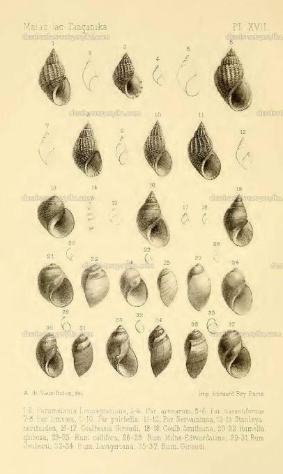 (τα οποία με την ευκαιρία να σημειώσω εδώ ότι παρόλο που τα άδεια κελύφη τους αποτελούν την κατοικία πολλών ειδών κοχυλόψαρων, ψάρια που ζουν σε σχετικά μικρό βάθος, αυτά ζουν σε βάθος 50 μέτρων και δεν ανεβαίνουν πιο ψηλά. Ο Pierre Brichard παρατήρησε ότι μεταφέρονται στα ρηχά από συνοδόντηδες που τα έχουν για τροφή.) υπάρχουν και πολλά άλλα όμορφα αλλά άγνωστα είδη στους ενυδρειόφιλους. Μερικά απ' αυτά : Paramelania damoni ![]() Martelia tanganyicensis ![]() Paramelania iridescens Tiphobia horei |