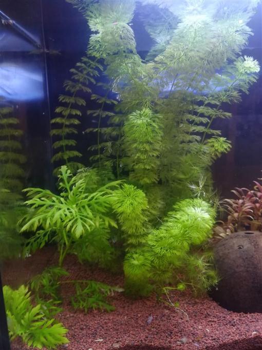 Πληροφορίες Διαστάσεις: (Hailea F-60) 0.58*0.30*0*33 (το έχω γεμίσει μέχρι 0.30 στο ύψος) Όγκος: 60L καθαρά, +-50 μεικτά Κατηγορία: Κοινωνικό Φυτά: Κερατόφυλλο, hygrophylla difformis, cryptocoryne, rubin, lobelia mini, alternathera reinecki mini και άλλο 1 ή 2 είδη που δεν θυμάμαι πως λέγονται. Ψάρια / Άλλα είδη: 4 γκάπυ (1 αρσενικό, 3 θηλυκά), σαλιγκάρια και θα προστεθούν και γαρίδες. Διακοσμητικά υλικά: Μία καρύδα ξύλινη (χαλίκι, ξύλα κ.λ.π.) Φόντο: μαύρο χαρτόνι/πλαστικό Φωτισμός: 2 λάμπες 24 watt Διάρκεια φωτισμού: 2.30-10.30 Φιλτράρισμα: Εσωτερικό φίλτρο HL-BT400 Θερμοστάτης: 100watt Λίπανση: - Παροχή CO2: - Παράμετροι: pH: 7.8 Γενική σκληρότητα (GH): - Ανθρακική σκληρότητα (ΚΗ): - Αμμωνία (ΝΗ3): 0 Νιτρώδη (ΝΟ2): 0 Νιτρικά (ΝΟ3): 5 Αλλαγές νερού: Κάθε κυριακή Θερμοκρασία: 26.3 Άλλες πληροφορίες: Φωτογραφία: https://imgur.com/a/VdtLHOb https://imgur.com/a/XOG4ztF https://imgur.com/a/rDwe9Sb https://imgur.com/a/xLdEmVI https://imgur.com/a/CLVBgcv https://imgur.com/a/1FWLigu Δυστυχώς οι φωτογραφίες χαλάνε στην ανάλυση μέσω αυτού του site...δεν μπορώ να τις ανεβάσω κατευθείαν εδώ γιατί είναι 1.50-2.70MB ο χώρος των φωτογραφιών... Τι θα μπορούσα να κάνω ώστε να το βελτιώσω κατά την άποψη σας; Επίσης, μπορώ να βάλω γαρίδες, έχει στρώσει ο βυθός πιστεύετε; Τέλος, τι άλλο είδος μπορώ να βάλω; |