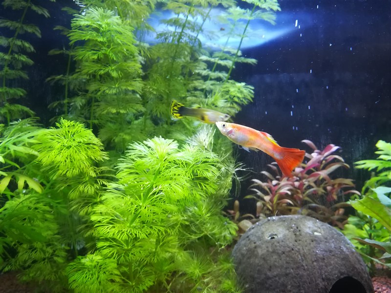 Άλγη έχω στο τζάμι καφέ. Έχουν αρχίσει ήδη οι γέννες, έχω 5 μικρά και 2 γκάπυ ετοιμάζονται. Κρίμα δεν μπορώ να βάλω ακόμα γαρίδες :/ , πρέπει να τρέχει 2 μήνες με ψάρια μέσα (γιατί τρέχει 1 μηνά χωρίς και 1 μήνα με ψάρια τώρα); Επίσης έχω έναν προβληματισμό, βλέπω ένα γκάπυ να κολυμπάει ''χάνοντας'' την ισορροπία του και να έχει κόκκινα βράγχια (και 1 ακόμα με κόκκινα βράγχια αλλά όχι τόσο έντονο κόκκινο), νομίζω πως είναι βακτηριακή μόλυνση και έτσι θα το πείρα μπορώ να ρίξω αλάτι σε όλο το ενυδρείο για να το προλάβω και στο άλλο ψάρι; (Δεν έχω καραντίνα ακόμα). Βρήκα τρόπο για τις φώτο! (Η 3η φώτο είναι πριν μετακινήσω το φυτό, φαίνεται λίγο η άλγη στο τζάμι και στο πίσω και στην γωνία και η 5η φώτο αν παρατηρήσεις τα βράγχια είναι λίγο κόκκινα) |