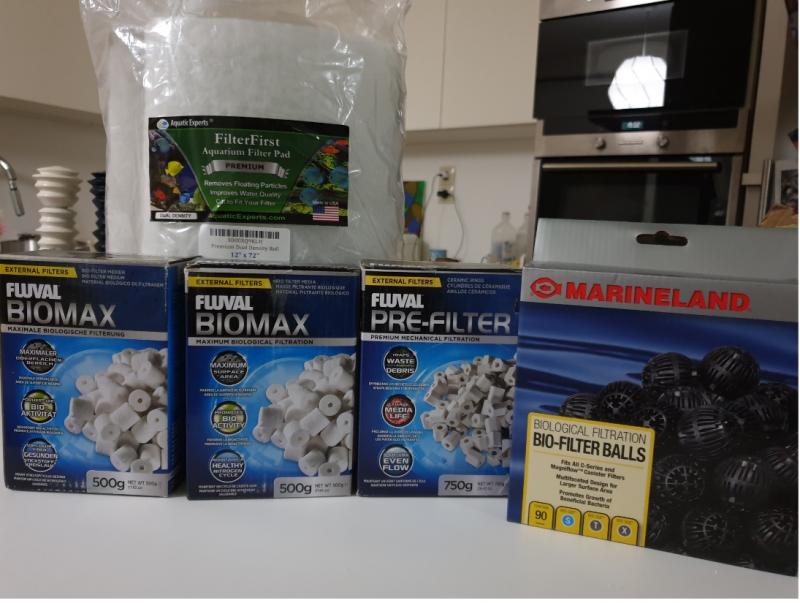 Αρχες του 2013 πηρα ενα καινουριο ενυδρειο περιπου 400 λιτρα 1.50μ μηκος Μετα απο σχεδον 8 χρονια εχασα πριν περιπου 2 χρονια τα 3 pitcus λόγω διακοπης ρευματος που δεν δουλευε η αεραντλια για αρκετες ωρες...αν και λογικα τα συγκεκριμενα αφου ταχα παρει ενηλικα, θαταν και σε μεγαλη ηλικια γιατι εχω διαβασει οτι ζουν περιπου 7-8 χρονια, τεσπα Εχασα και 1 myleus μαζι με 2 Pleco απο αγνωστη αιτια όλα τα αλλα ψαρια απο μωρά, 5 clown loach, 5 myleus kai 3 satanoperca ζουν μια χαρά ως τωρα Ξεκινησα να διαβαζω τι μπορω να κανω για να βελτιωσω τα φιλτρα μου για να ειναι το νερο "κρυσταλινο" Στην αρχη το ενυδρειο δουλευε με ενα 2217 και ενα aquanova 1500, μετα απο 3-4 χρονια περιπου λογω διαρροης πεταξα το aquanova και εβαλα άλλο ενα καινουριο 2217, συνολο 2 eheim 2217 δουλευουν. θελω οσο το δυνατο καλη μηχανικη φιλτρανση με οσο πιο πολυ βιολογικο υλικο Οπότε αγορασα τα παρακατω της φωτογραφιας υλικά απο τις γνωστες μαρκες και δεν δοκιμασα-δεν εμπιστευτικα την ελαφροπετρα που χρησιμοποιειτε οι περισσοτεροι,αφου τα βρηκα και σε καλη τιμη. πως γεμισα τα 2217 μου και πειτε μου την γνωμη σας για αρχη εβγαλα όλα τα μπλε σφουγκαρια που ειχα στα φιλτρα!πιστευω οτι κανουν αυτο που λεγεται "καναλι" και δεν πηγαινει παντου το νερο ομοιομορφα. απο το κατω μερος, και πριν βαλω το Lattice Screen , εβαλα μερικες μπαλες που μου περισσευαν bio filter της marineland λογω οτι ειναι μεγαλες και πιστευω δεν θα βουλωσουν την εισαγωγη νερου ευκολα.Την ιδεα την ειδα απο το μελος κλεοβουλος που ειχε κανει κατι αντιστοιχο και ειχε βαλει παλιά siporax στην θεση αυτην!πιστευω να κερδισα έτσι λιγο χωρο παραπάνω, Αφου τοποθετησα το Lattice Screen, απο πανω εβαλα 750gr της fluval to pre filter michanical filtration, προσοχή όμως!! στην αρχη το εβαλα μεσα σε 2 σακουλακια, ελα ομως που δεν εφαρμοζουν καλά στον κάδο όσο χρονο και να ξοδεψα!! Το σωστο πιστευω ειναι να τα βαλεις χυμα μεσα χωρις σακουλακι, ετσι τα εβαλα και εγω και γεμισε ομοιομορφα τον καδο!! Ενα λαθος που κανουν πολλοι πιστευω, σίγουρα για συντηρηση to ευκολο ειναι να τα βαλεις σε σακουλακια αλλα έλα ομως που δεν ειναι σωστό αυτο... και οι οδηγιες λενε να τα βαλεις μέσα χύμα. Μετα και σαν τελευταιο βημα για μηχανικη φιλτρανση προσθεσα το ενυδρειακο βαμβακι της φωτο, το συγκεκριμενο ειναι πολυ σκληρο, αγορασμενο απο το amazon καμια σχεση με αυτο που πουλανε στα ελλ.καταστηματα το οποιο ηταν πολυ μαλακό και ελιωνε καμια φορα στο φιλτρο. μετά το βαμβακι προσθεσα το παλιο βιολογικο υλικο που ειχα σε σακουλα, 1 kg eheim Substrat Pro Bio(τωρα που το σκεφτομαι το εχω 5-6 χρονια και απλα το καθαριζω, ισως να πρεπει να το αλλαξω σταδιακα, μαζι με 1 κιλο siporax που το ειχα προσθεσει το καλοκαιρι). Το υλικο το συγκεκριμενο εφαρμοσε αριστα μεσα στην σακουλα στον καδο οπότε δεν το εβαλα χύμα αυτην την φορά στον κάδο. Στο τελευταιο σταδιο προσθεσα λιγα bio max fluval οσα χωρουσε μαζι με της marineland τις bio σφαιρες.Προσθεσα τελος το lattice και εκλεισα το φιλτρο. Να ενημερωσω οτι παλια ειχα 3-4 μπλε σφουγκαρια στον κατω μέρος, απο πανω 1.5 κιλο βιολογια και στο πανω μερος λιγο ενυδρειακο βαμβακι θεωρητικα με τοσα σφουγκαρια θαπρεπε ναχω καλη μηχανικη φιλτρανση που δεν ειχα! Για να δω τωρα με τις αλλαγες αυτες μονο αν θα δω διαφορά,περιεργος ειμαι! ------------------------- Τελευταία επεξεργασία από το χρήστη h3342 : 10-02-20 στις 22:56 Αιτία: Automerged Doublepost |