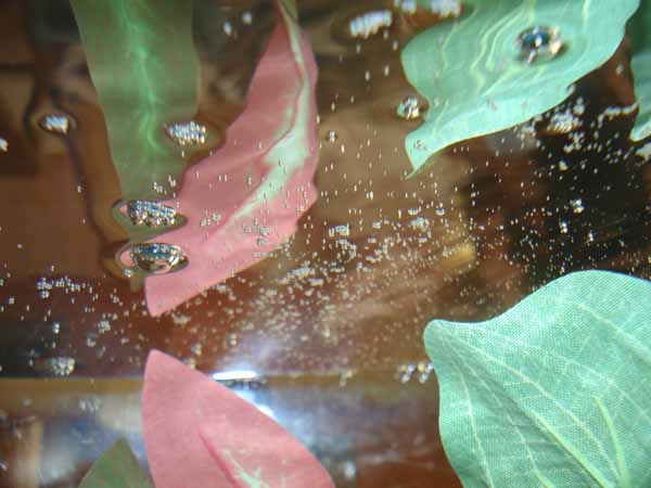 Έχω ένα προβλημα... Έχω ένα μονομάχο σε Ενυδρείο 20lt με θερμοστάτη και φίλτρο Την προηγούμενη βδομάδα του έκανα μερική αλλαγή νερού (60%) έπειτα απο 2 μέρες η επιφάνεια σχεδόν γέμισε με φυσαλίδες (δεν είναι σαν αυτές που κάνει ο ίδιος ο μονομάχος για φωλιά) έκανα και άλλη αλλαγή νερού αλλά και πάλι μετα απο 3 μέρες πάλι τα ίδια Τι μπορεί να φταίει? ίσως το φίλτρο?? δεν το έχω πολύ καιρο (δύο μήνες με το ψάρι + 1 μήνα στρώσιμο) Σας βάζω μερικές φώτο για να δείτε τι εννοώ |
