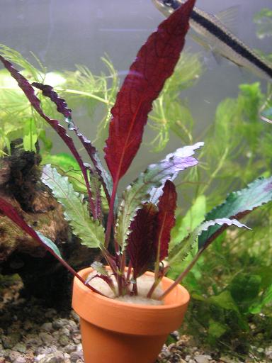 οπως τα βλεπω το πρωτο μοιαζει με Cryptocoryne undulata ή Alternanthera reineckii 'Pink' (roseafolia) ή Alternanthera reineckii 'Purple' (lilacina)....................