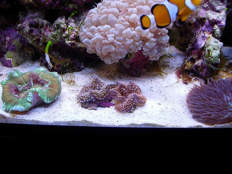 Εξοπλισμός: Ενυδρείο 75lt, Εξωτερικό φίλτρο (χημικό – μηχανικό) Eheim 2213, Skimmerξυλόπετρας, Φωτισμός 2Χ24W (Τ5), Κυκλοφορία από μια Koralliananoκαι μία Korallia 1, controllerθερμοκρασίας Elliwel915, Θερμαντήρας Jager 75Watt Η βιολογία καλύφτηκε από ζωντανό βράχο και άμμο. Κάτοικοι: Δύοamphiprion ocellaris, Μίαcleaner shrimp (ήταν 3 αλλά….), Δύο mithrax crabs. Κοράλλια: ricordea, trachyphyllia, sinoularia, sacrophyton, Acro, Monti, fungia, buble corall, goniopora. ¶λγη: μεγάλη ποικιλία από μακροάλγες (ως επί το πλείστον, γιατί και από τις άλλες καλά πάμε). Μετρήσεις: PH ~7,9 αλκαλικότητα στο 8+, ασβέστιο ~370, μαγνήσιο ~1550, ΝΟ3 ~12 και μη μετρήσιμα τα NH4, NO2, φωσφορικά. Νάτο …