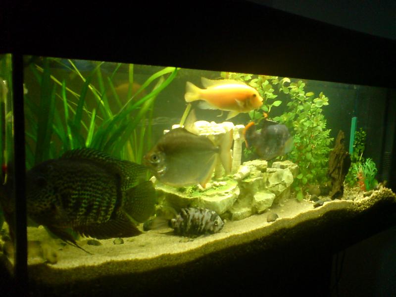 Κατά δευτερον εκτος από οτι εχει ασχετα ψάρια μεταξύ τους το ενυδρειο σου ειναι πολύ μικρο γι'αυτα.... 120 λίτρα για αυτα τα θεριά!! Είναι λυπηρο και που τα βλέπεις εκει μέσα....Σαν σαρδελοκουτι....