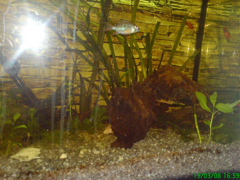 120λίτρα 5guppies+2 γεννημένα(7σύνολο) 6 corydoras 1 ροζ πλακόστομο δε ξέρω τι είναι, το έχω από την αρχή και έχει αντέξει(το μόνο), οπότε το λέω ήρωα. 1 κιχλίδα bolivian ram(κοινωνικό πραγματικά) και 3 από τα προτοκαλί, είναι όλα αρσενικό και τα λέω ξιφοφόρους. Αν λέω κάτι λάθος, μου το λέτε. |