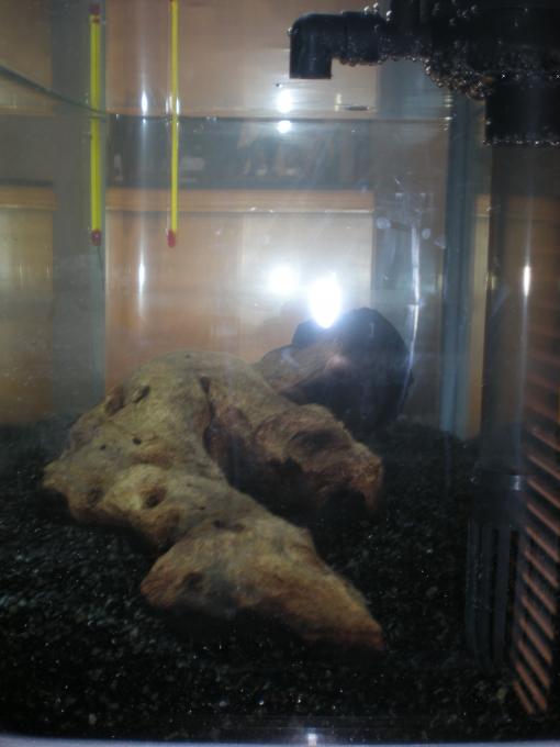Προσπάθησε να παίξεις με το ξύλο, ώστε να μην είναι ακριβώς πίτα στο χαλίκι. ¶λλαξε του θέση ώστε να υψωθεί στο ενυδρείο. Με την τοποθέτηση αργότερα της ανούμπιας και το δέσημό της σε διάφορα ύψη στο ξύλο, θα δημιουργηθεί εσσωτερικό φόντο που θα καλύπτει μεγάλο μέρος της πίσω πλευράς του ενυδρείου. Οπτικά θα είναι καλύτερο.