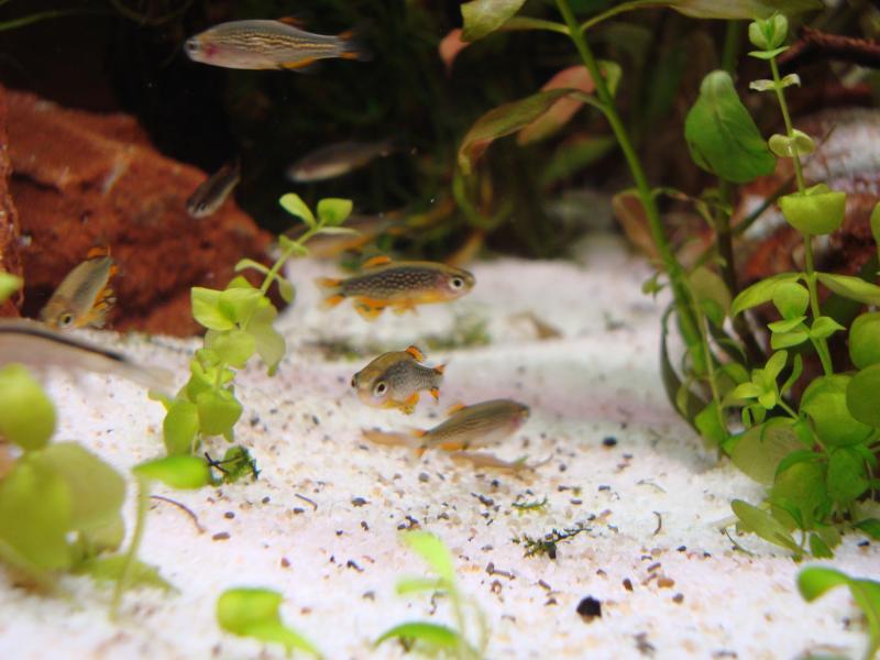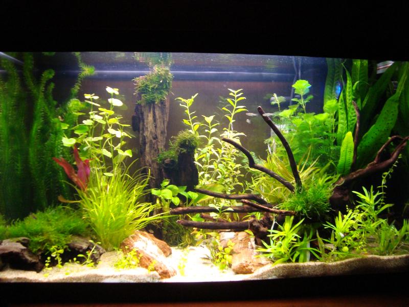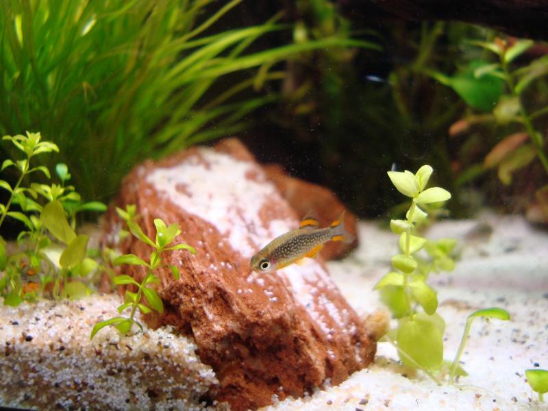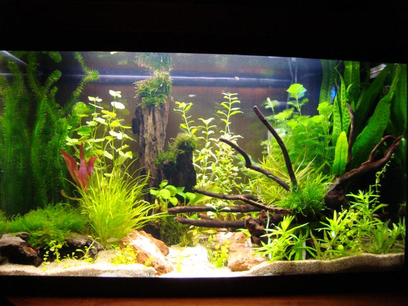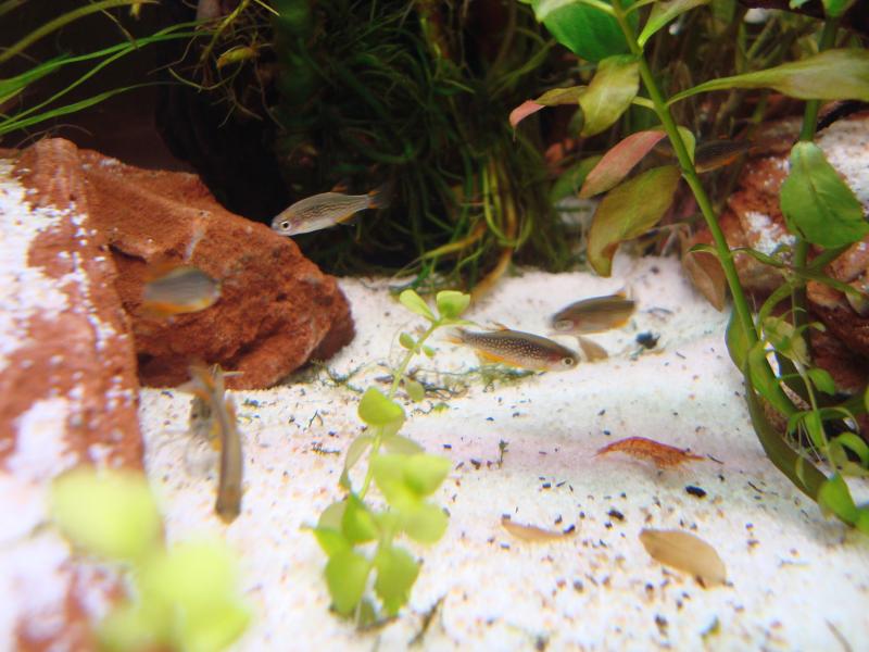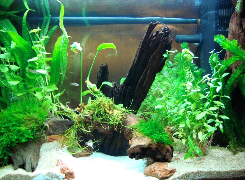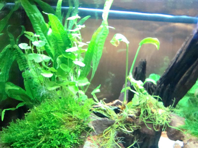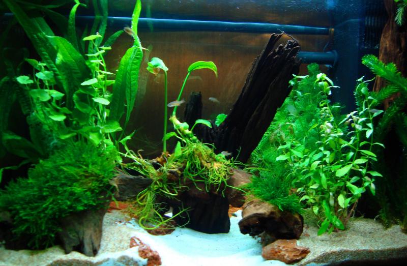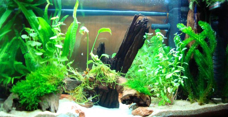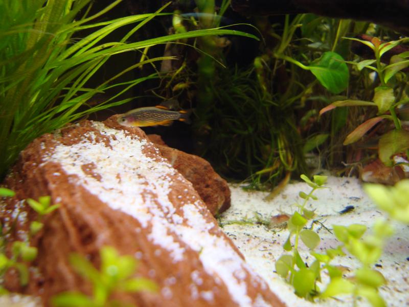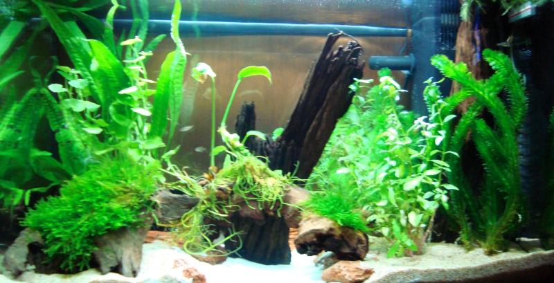 Εδω χρειαζομαι τις υποδειξεις των εμπειρων στα φυτα!! Μετα τη προσθηκη φυτων και 13 cpd (celestial pearl danio) το αποτελεσμα ειναι το παρακατω! Σειρα εχουν οι γαριδες που δε βρισκω πουθενα! Οπως και ph controller με φυαλη CO2 (να φυγει το DIY). Ευχαριστω τον Αλεξ που (προλαβα) τα cpd τα οποια μπορω να πω οτι ειναι τα πιο διασκεδαστικα ψαρακια που εχω δει ποτε! Περιεργα με φοβερο χαρακτηρα και εχω να πω οτι δε δεχονται να φανε με τιποτα φυλαρακια αλλα μονο αποξηραμενη αρτεμια την οποια τσακιζουν στη κυριολεξια! Επισης παρατηρω οτι ανα δυο στριφογυριζουν με νευρικες κινησεις αλλα δε μπορω να καταλαβω αν τσακωνονται η .... αγαπιουνται!! Φυσικα το ενυδρειο ειναι με βιολογικα υλικα απο το δισκοενυδρειο!! Αμμωνια = 0, ΝΟ2 = 0 ΝΟ3 = 10 Ζητω συγνωμη για την ποιοτητα των φωτογραφιων εκτος απο τα φυτα ειμαι και σκραπας και στη φωτογραφια! Τα δε cpd δεν καθονται με τιποτα να τα φωτογραφισω!