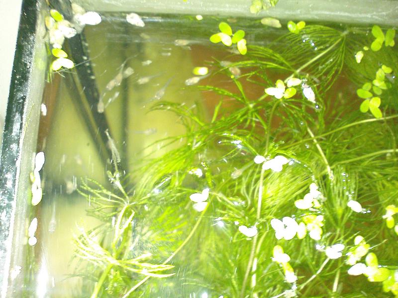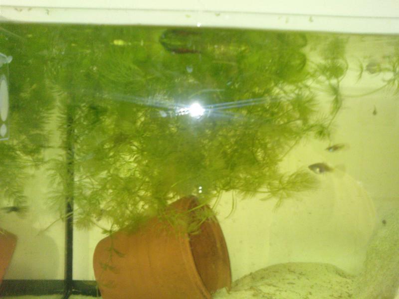 Την Παρασκευή το βράδυ στο ενυδρείο στη δουλειά μου η φουσκάρα (ονομα που της έδωσε ο γιος μου για προφανείς λόγους) γεννησε.. Αυτή τη φορά δεν υπήρχαν kribensis, παρα μόνο Guppy. Δείτε λοιπον τι σου κάνει το κερατόφυλλο, λίγη φακή, ελάχιστη πιστία, όλα χυμα μες το ενυδρείο. Σήμερα Μέτρησα 20 μικρά, που για μένα είναι 100% (εχω ακούσει και γεννες με 40 μικρά, αλλά η φουσκάρα εχει κάνει μόλις 2 γέννες....) Τα μικρά κοπαδιάζουν, κρύβονται και είναι ασφαλή μεσα στο πράσινο! Και η φύση διαλέγει τα πιο ανθεκτικά-έξυπνα.... Το μότο μου είναι, δεν θέλει κόπο θέλει τρόπο! |