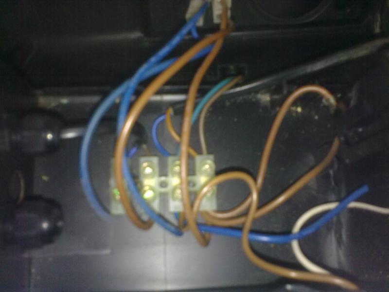 Κάτω παει από το διακόπτη μπλε καφέ μπλε καφέ. Στα δυο δεξιά συνδέονται και τα φώτα (ο χρονοδιακοπτης). Από πάνω τα δυο αριστερα ειναι για το θερμοστατη (και φίλτρα αλλά αφού δεν έχεις μόνο το θερμοστατη) και τα δυο δεξιά για την παροχή ρεύματος.