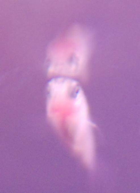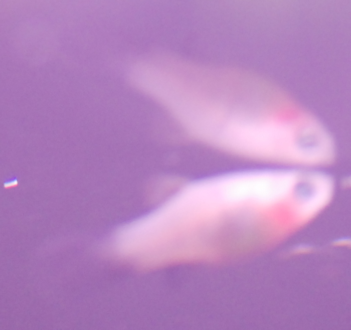Γκάπυ έχουν φύγει από τα ενυδρεία μου εδώ και ενάμισυ χρόνο, αλλά ούτε μορφολογικά μοιάζει. Μεταγγίσεις νερών από το ένα ενυδρείο στο άλλο δεν κάνω, και θεωρώ την περίπτωση να μεταφερθεί από την αντλία που κάνω τις αλλαγές κάπως σπάνιο. Επίσης από τα άλλα ψάρια που έχω σπίτι είναι ακόμα πιό σπάνιο να μεταφέρθηκε γόνος (rasbora espei, rammynose tetra, zebra loach, Herotilapia multispinosa, Beta splendens, Botia lohachata, Lamprologus stappersi, Neolamprologus leleupi, platy) Κόκκινο χρώμα έχει γύρω στην κοιλιά, αλλά το ψαράκι είναι μάλλον ταλαιπωρημένο και θα χρειαστεί λίγος χρόνος φαντάζομαι μέχρι να εμφανίσει τα χρώματά του. Θα στείλω φωτό μόλις το εντοπίσω στο ενυδρείο. ------------------------- Δεν μου φαίνεται Αλέξανδρε οτι μοιάζει με Congo tetra fry. Παραθέτω τις φωτογραφίες που τράβηξα πολύ γρήγορα . Συγχωρείστε με για την κακή τους ποιότητα. Τελευταία επεξεργασία από το χρήστη nikosm1 : 26-10-10 στις 16:35 Αιτία: Automerged Doublepost |
