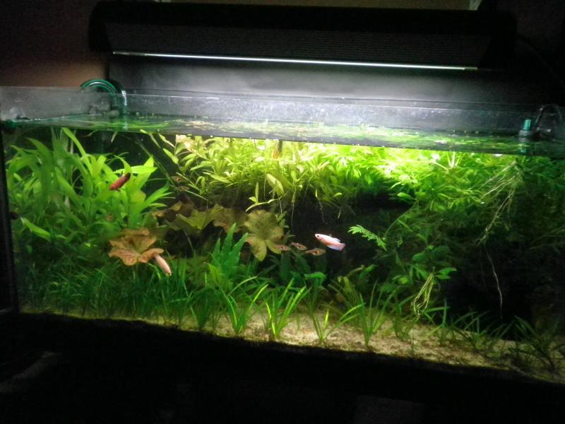 Διαστάσεις:78*31.5*35 Όγκος:70λτ Κατηγορία:βιοτοπικο; Φυτά:hygrophila difformis-polysperma "rosanervig-corymbosa siamensis 53B, cryptocoryne crispatula var balansae-parva-wendtii green-wendtii brown-willisii, nymphaea lotus, vallisneria sp. Ψάρια / ¶λλα είδη:1 colisa lalia,5 female bettas,7 rasbora hengeli,7 botia sidthimunki,rasmshorn snails Διακοσμητικά υλικά: (χαλίκι, ξύλα κ.λ.π.) αμμος, ξυλο Φόντο: Φωτισμός:2*24 τ5 Διάρκεια φωτισμού:8 ωρες Φιλτράρισμα:enheim 2211 Θερμοστάτης:100w Λίπανση: Παροχή CO2: Παράμετροι: pH:7 Γενική σκληρότητα (GH):8 Ανθρακική σκληρότητα (ΚΗ):6 Αμμωνία (ΝΗ3): Νιτρώδη (ΝΟ2):0 Νιτρικά (ΝΟ3):15 Αλλαγές νερού:καθε εβδομαδα 15λτ Θερμοκρασία:25 ¶λλες πληροφορίες: Φωτογραφία: |
