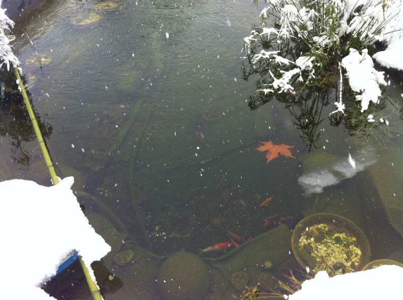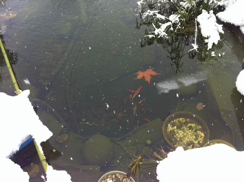 Δεν ξερω αν θα ηταν καλο να σπασεις τον παγο, αν γινετε βεβαια! Εχεις ψαρια μεσα, ζουν με τετοιο κρυο?