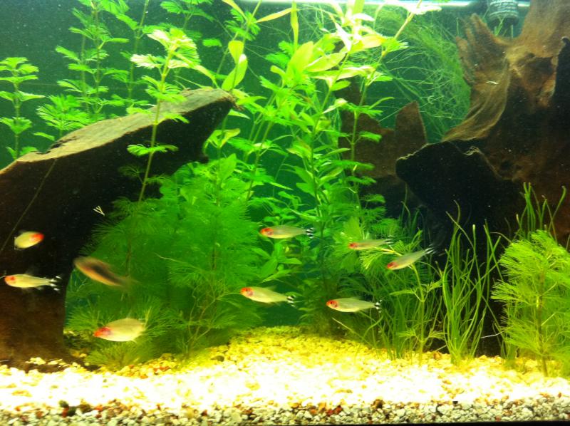 Απορω βεβαια πως επιζουν τα ψαρια με τοσα πολλα νιτρωδη, εκτος αν τα εβαλες τωρα τα ψαρια και δεν εχουν φανει ακομα τα αποτελεσματα ή κανουν λαθος τα τεστ. Το χαλικι δεν ειναι σωστο υλικο για διατηρηση Corydoras. Ta Corydoras καλο ειναι μεγαλυτερη ομαδ. Το ιδιο και οι ροδοστομοι. Το pH ειναι οριακο για σωστη διατηρηση των tetras αυτων. Τα νιτρικα οταν λυθει το πρβλημα της βιολογιας καλο ειναι να κατω απο 25ppm αλλα ακομα καλυτερα μεχρι 10. Καλη συνεχεια και λυσε το θεμα της βιολογας συντομα. Η δυνατες αερντλιες με τα νιτρωδη που εχεις κανουν πολυ καλο. Οταν λυθει το πρβλημα δεν χρειαζονται, διωχνουν το λιγο διοξειδιο που εχει το νερο για τα φυτα και ανεβαζουν πεχα. Τσεκαρε τις περιοχες που ακουμπανε τα ξυλα με τη μεγαλη επιφανεια στο βυθο, για αναεροβιες περιοχες και συγκεντρωση υδρειθειου. Καλο θα ηταν να μην ακουμπαγαν flat στο βυθο.