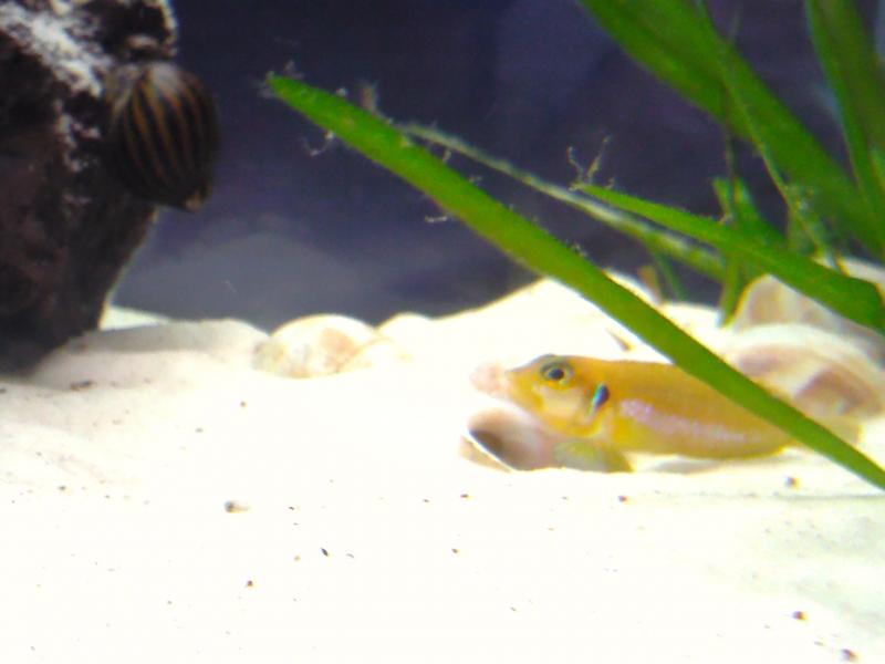 Μετά απο 20 ημέρες άδειας ξανά γύρισα σπίτι και αφού είχα φροντίσει να πάρω μία αυτόματη ταΐστρα όλα πήγαν καλά..!! Λίγο ένα θέμα είχα και έχω με την θερμοκρασία αλλα για εμάς εδώ στην Γερμανία απο εδώ και πέρα αρχίζει να σπάει η ζέστη, οπότε βλέπουμε για του χρόνου τί θα κάνουμε. Φυσικό να είχαν αυξηθεί οι μετρήσεις αλλα και αυτές έστρωσαν τώρα. Το ΟΛΑ ΠΗΓΑΝ ΚΑΛΑ το λέω γιατί τώρα θα σας πώ τα καλά: Γυρνάω που λέτε σπίτι και ανάβω τα φώτα 1η αντίδραση καμιά 30-35 μικρα julidochromis marlieri έτρεχαν να κρυφτούν και ξανά εμφανιζόντουσαν σιγά σιγά. 2η αντίδραση σε ένα κοχύλι είδα μικρά Lamprologus ocellatus 'Gold' Οπότε καταλαβένετε την χαρά μου... Τώρα ένα θέμα που έχω είναι οτι μετά απο 2 ημέρες που είμαι εδώ και τα έβλεπα τα μικρα ocellatus έχουν εξαφανιστεί και η μαμα έχει αλλάξει κοχύλι και έχει γεμίσει το παλιό με άμμο. Το καθάρισα λίγο μπάς και κάτι δεν πάει καλά αλλα τίποτα τα μικρά πουθενά.. Μία περίπτωση που σκέφτομαι είναι να τα έφαγαν τα άλλα. Και μία άλλη είναι να έχουν κρυφτεί τα μικρά πουθενά και να μην τα βλέπω!! Γιά πείτε και εσείς καμία γνώμη! Ευχαριστώ. -Αλεξανδρος- Ακολουθούν FOTO (στην 6η foto μπορείτε να δείτε λίγο τα μικρά) |
