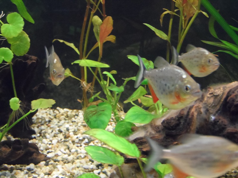 Όγκος: 320 Ltrs Κατηγορία: Piranhas Red Belly Φυτά: Ludwigia repens Rubin, ceratophyllum demersum, Java Moss, Alternanthera reineckii ROT, Vallisneria Gigantea, Microsorum pteropus, Anubias barteri nana. Ψάρια / Άλλα είδη: 6 Pygocentrus nattereri Διακοσμητικά υλικά: Ξυλα, Πετρες. (χαλίκι, ξύλα κ.λ.π.) Φόντο: Μαυρο Φωτισμός: 2*54 Watt Τ5, Moon Light with Led. Διάρκεια φωτισμού: Ο Κυριος φωτισμος 8 ωρες, η ταινια Led 1 ωρα πριν και 1 ωρα μετα απο τον κυριος φωτισμο Φιλτράρισμα: 2*Εηειμ 2217. Θερμοστάτης: Jager 300W Λίπανση: Ολη την σειρα της Seachem Παροχή CO2: Οχι Παράμετροι: pH: 7,3 Γενική σκληρότητα (GH): 4 Ανθρακική σκληρότητα (ΚΗ): 3 Αμμωνία (ΝΗ3): 0 Νιτρώδη (ΝΟ2): 0 Νιτρικά (ΝΟ3): 17 Αλλαγές νερού: 125 Λιτρα (~35%) καθε πεντε μερες (80% R.O-20% Βρυσης) Θερμοκρασία: 27 με 28 Άλλες πληροφορίες: Elliwel 915 για ελενχο της Ψυξης/Θερμανσης, Προσφατα τοποθετηθηκε το ξυλο στην μεση και αντιμετοπιζω καποιο μυκητα αλλα θα περασει με τον καιρο. Σκοπος ειναι να κρατησω πεντε εννηλικα Red Bellys. To ενα αγοραστηκε σε σημαντικα μεγαλυτερο μεγεθος απο τα αλλα, ακομα ομως δεν αντιμετοπιζω καποια ιδιαιτερα προβληματα. Ταισμα δυο φορες την μερα με γαριδες, καλαμαρι, μυδια (Που ειναι και τα αγαπημενα τους), κοτοπουλο, φιλλετο περκας, Bloodworms, Daphnia, pellets αραια και που, και μια φορα το μηνα καρδια γαλοπουλας.. Βεβαια με τετοιες τροφες στην τεταρτη μερα απο την αλλαγη υπαρχει καποιο πρωτεινικο φιλμ στην επιφανεια... Περιμενω τα σχολια σας και τις παρατηρησεις σας. Φιλικα Μιχαλης