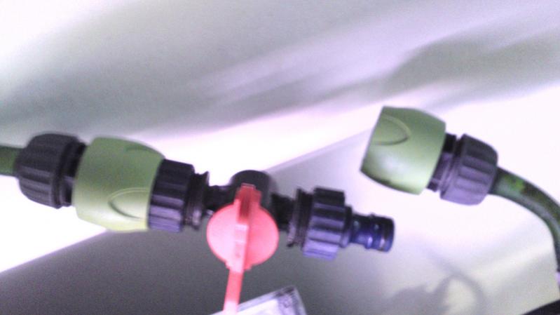 Πρεπει το βανάκι της εισόδου να είναι ανοιχτό και της εξόδου κλείστο. (99% έτσι είναι -δηλ στην εξαγωγη το συστημα- αλλα μια επιβεβαιωση δεν κανει κακο). Ετσι το νερό δεν θα μπορει να παει αλλου, περα απο το Τ κ μετα να φυγει απο το λάστιχο. (προφανώς το βανακι του "βρωμικου νερου" πρεπει να είναι ανοιχτό...)