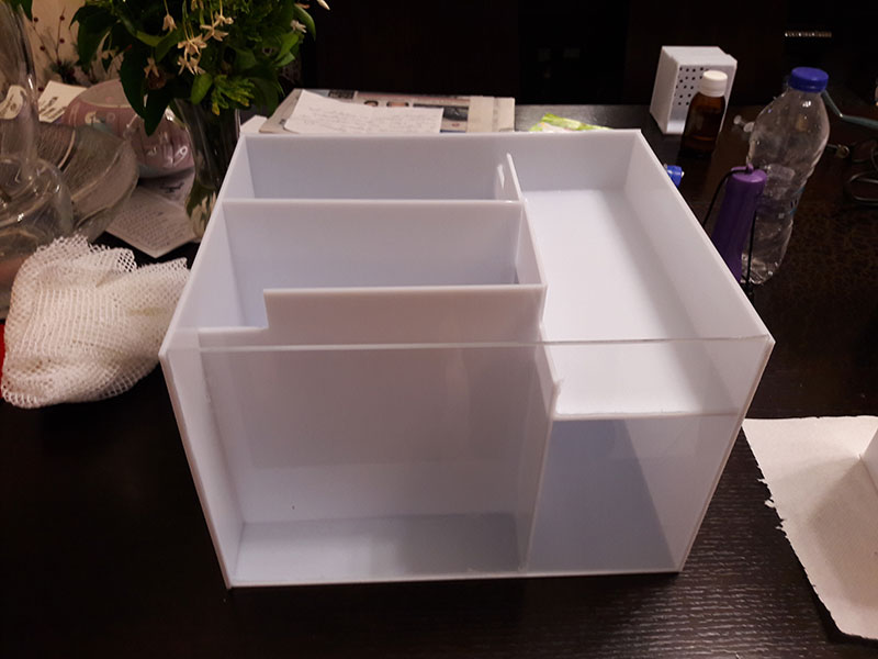 Το τριπτερύγιο δυστυχώς έγινε μεζές σε έναν ωραίο γοβιό που έχω προσθέσει... Τον πέτυχα με κόκκινη ουρίτσα να προεξέχει από το στόμα του!! Δύο μέρες μετά την τότε ανάρτησή μου πάντως, ξαναβρήκε το κόκκινο χρώμα του... Το γωβιοειδές το πέτυχες!!! Έχει πολύ ιδιαίτερη συμπεριφορά!! Οι κόκκινες και πράσινες μακροάλγες δυστυχώς με τον καιρό αποχρωματίζονται... δεν ξέρω γιατί, καθώς το φως είναι φως ηλίου και αρκετά έντονο, περίπου 1w/lt... Ίσως θέλουν περισσότερη ροή... θα το ψάξω γιατί είναι πανέμορφες!! Μπορώ κάθε 2 μήνες που αρχίζουν αν λιώνουν να αλλάζω/προσθέτω νέες, αλλά το θέμα είναι να αναπτύσσονται στο ενυδρείο!! Η Sargassum Muticum μεγαλώνει γρήγορα αλλά διαπίστωσα οτι χρωματίζει κίτρινο το νερό στο ενυδρείο όταν είναι σε αρκετή ποσότητα!! Ο ενεργός άνρακας δεν κάνει δουλειά!! Το όζον όντως αποχρωματίζει αποτελεσματικά αλλά μετρώντας το ORP με ένα pen stick που μου έδωσαν κάθε λίγο δεν γίνεται δουλειά!! Έχω παραγγείλει controller!! Η ποσειδωνία μας τα πάει σούπερμε τον φωτισμό αυτό!! Την έχω κλαδέψει 2 φορές!! Το sump το έχω ξεκινήσει αν και αργοπορημένα, σε μια τετράγωνη έκδοση που θα πατάει πάνω σε ένα βαρέλι 30 λιτρων της αναπλήρωσης!! Δεν παλεύονται οι συνεχείς αλλαγές νερού!! Φαίνεται στις παρακάτω φωτος...Από το ενυδρείο θα μπαίνει το νερό σε σφουγγάρι και ενυδρειακό βαμβάκι σε ένα αποσπώμενο κουτάκι, θα περναει από το σκίμερ, θα συνεχίζει σε ένα οριζόντιο ATS, μετά σε ένα upflow ATS και μετά στον χώρο της επιστροφής όπου θα υπάρχει και ένα μικρό φιλτράκι με ενεργό άνθρακα... Έχω παραγγείλει grow leds με fans έτοιμα για τα 2 ATS.. Σε καμιά βδομάδα πιστευω να έχω ολοκληρώσει και να παρουσιάσω!! Τα ανήψια μου ζητάνε μάσκες να πιάσουν τα δικά τους ψαράκια!! έχουν τη μούρλια του θείου |