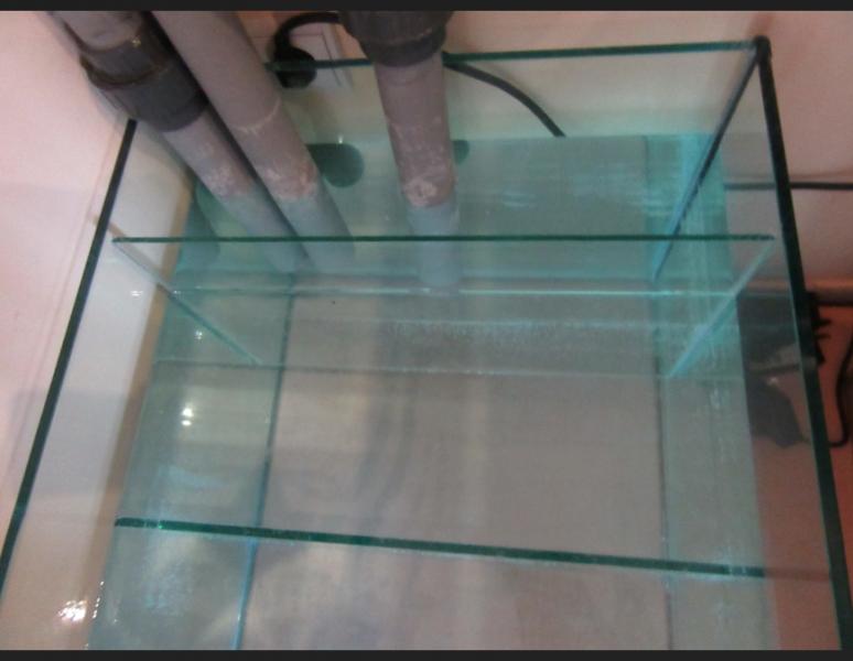 Εγώ θα σου πρότεινα μέχρι να έρθουν οι κάλτσες να βάλεις τα σφουγγάρια σου κάπως έτσι αν γίνεται, ώστε να λειτουργεί όλη τους η επιφάνεια.. Εν ανάγκη, στήριξέ τα με ένα eggcrate αφου το τοποθετήσεις πλάγια... Αν έχεις αρκετά χοντρά, βάλε κανα καλτσόν να κρατήσει σωματίδια... Επίσης ένα φιλτράκι όπως σου είπαν τα παιδιά, για τα άνθρακα... Μιας και το νερό σου είναι αρκετό, άστο να τρέχει καμιά βδομάδα... |