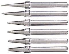 Σχετικά με τις μύτες, υπάρχουν πάρα πολλές για να επιλέξεις (αρκεί να σου το επιτρέπει και το κολλητήρι που θα αγοράσεις). Οι ποιο χοντρές χρησιμοποιούνται για καλώδια και μεγάλα εξαρτήματα ενώ οι ποιο λεπτές είναι για μικρά εξαρτήματα και ολοκληρωμένα κυκλώματα. Μια καλή μύτη για πολλές δουλειές είναι σαν την τρίτη από κάτω στην παρακάτω φωτογραφία. |